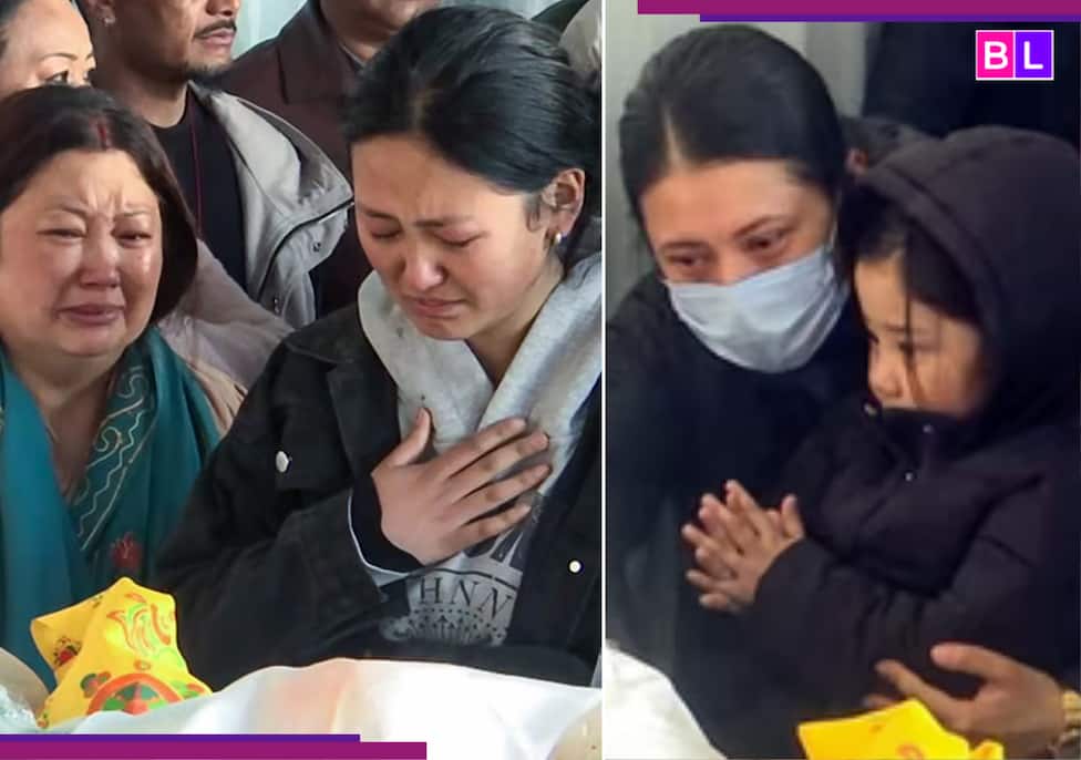 #KLOK | West-Bengalen: Prashant Tamangs vrouw Martha Aley en hun dochter betuigen hem hun laatste emotionele respect in Chowrasta in Darjeeling.