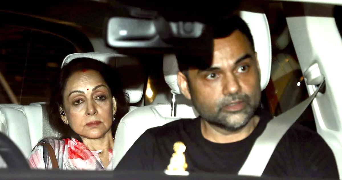 BEELD: Hema Malini en Abhay Deol keren terug van Dharmendra’s bezoek aan het Breach Candy Hospital op dinsdag 11 november 2025. Fotografie: Panna Bandekar