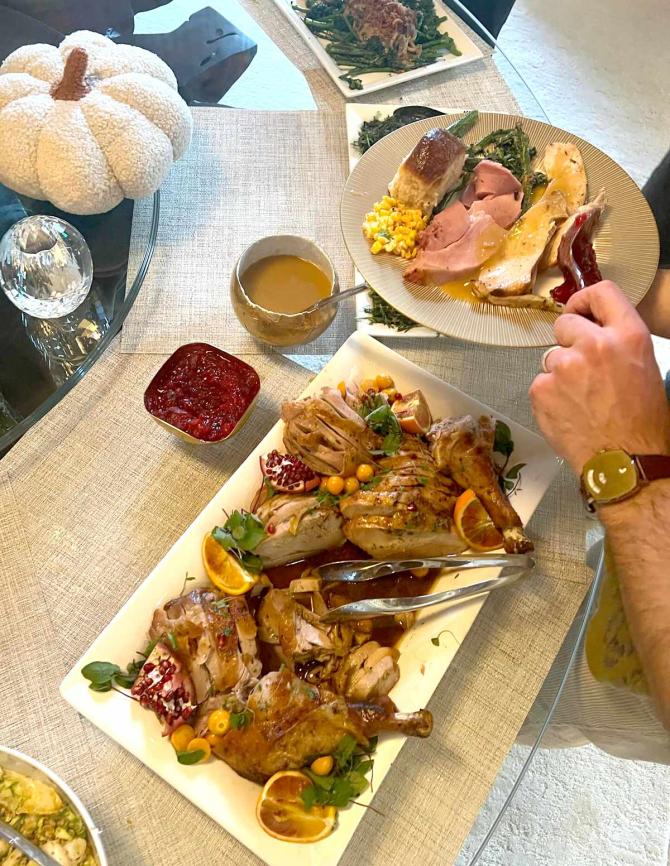 ‘Na zoveel tijd van huis te hebben doorgebracht en rond te hebben rondgezworven Uw reserveIk herinner mezelf er alleen maar aan dat een van de beste dingen in het leven het omringd zijn door dierbaren is. Met enorme dankbaarheid Fijne Thanksgiving voor iedereen die het viert.’