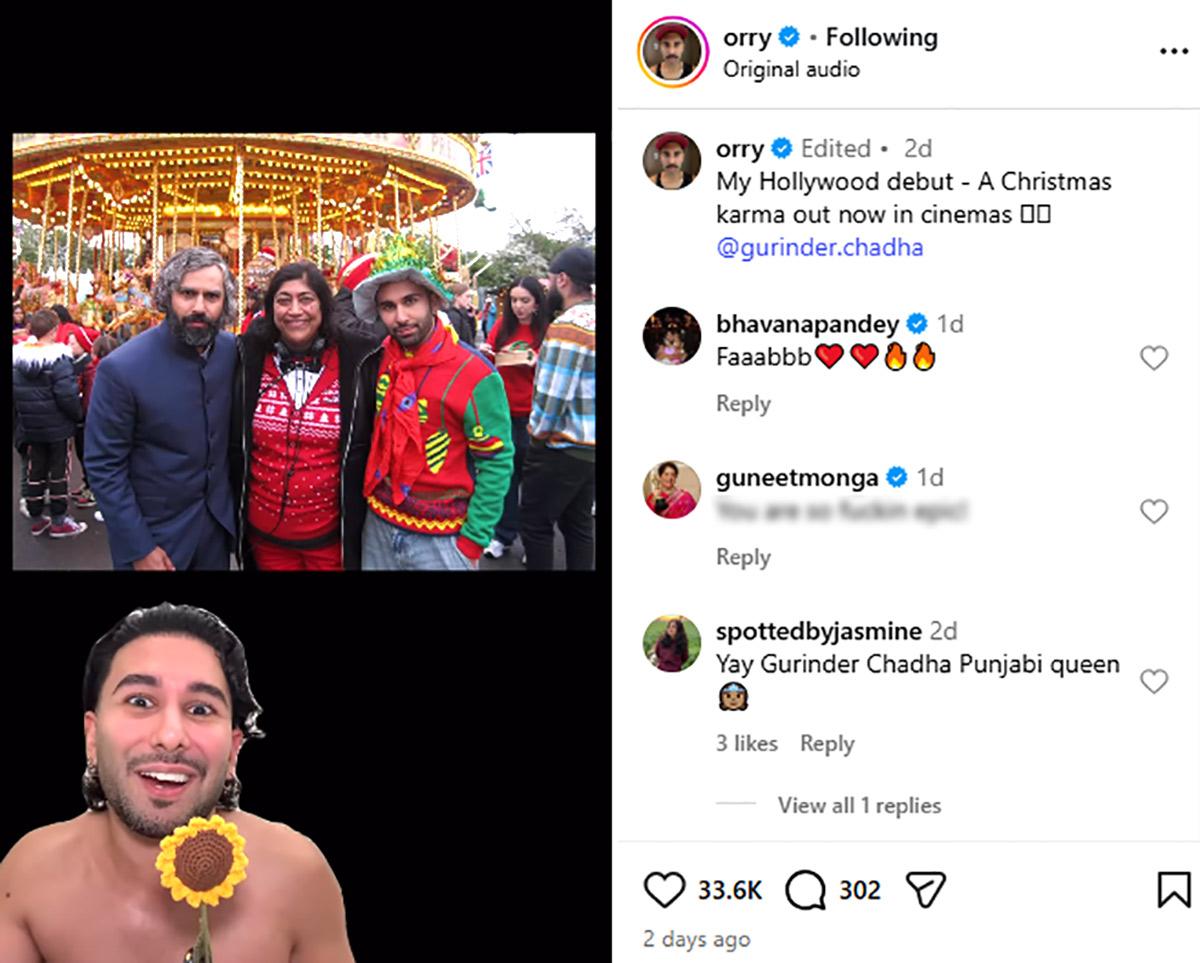 BEELD: Sorry voor Kunal Nayyar en Gurinder Chaddha. Fotografie: vriendelijke hoffelijkheid Orry, ook bekend als Orhan Awatramani/Instagram