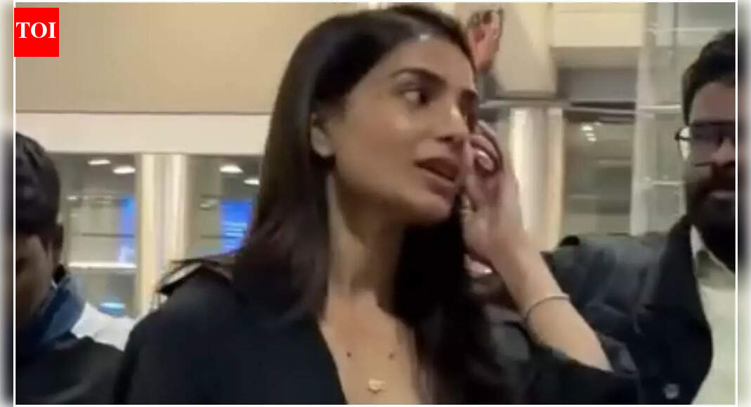 Samantha Ruth Prabhu en Raj Nidimoru werden onlangs gespot op de luchthaven van Hyderabad. De actrice zag er schattig uit in een zwarte binnentop met een losse blazer eroverheen en een bijpassende formele broek. Ze was verwikkeld in een gesprek met haar man, Raj Nidimoru, toen ze het luchthaventerrein verlieten. Samantha was ook verplicht om enkele foto’s te maken met haar fans terwijl het stel naar de auto ging. Wat echter ieders aandacht trok, was haar prachtige mangalsutra.