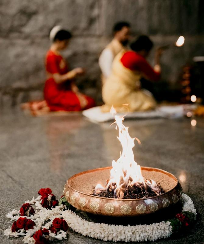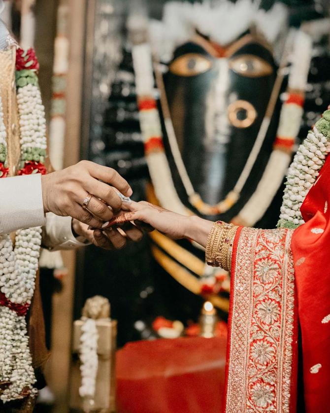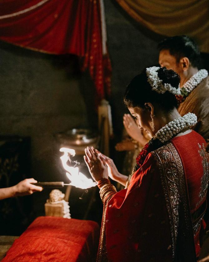DE Tijden van Hindoestan De krant meldt dat de bruiloft maandagochtend plaatsvond in de Ling Bhairavi-tempel in Coimbatore.