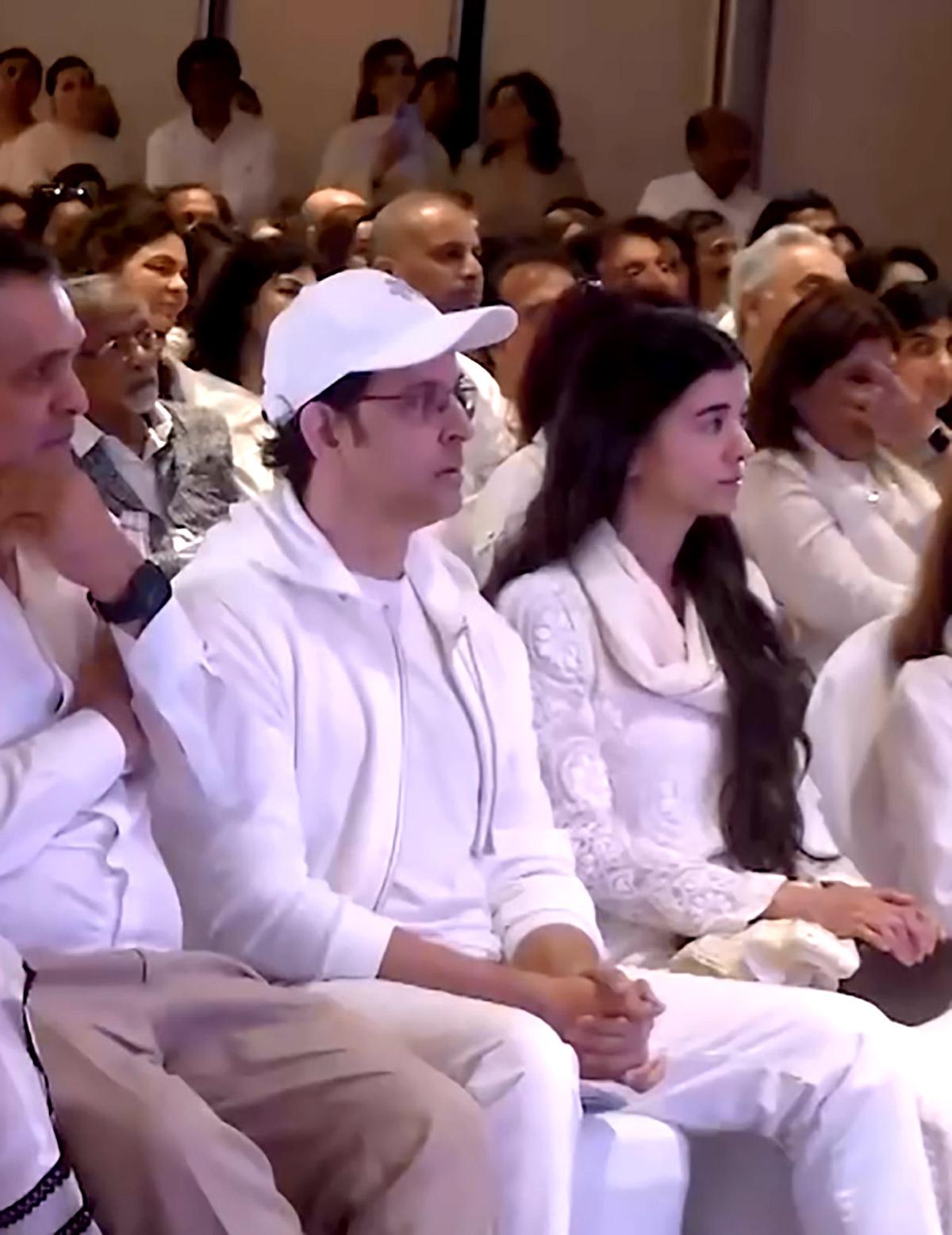 Sussanne Khan, die tijdens de gebedsbijeenkomst instortte, deelde een video van de gelegenheid en schreef een emotionele notitie op Instagram: ‘Zarine Sanjay Khan voor de wereld, maar voor mij en mijn broers, gewoon onze moeder. Zij was mijn wereld, dat dacht ik tenminste, totdat ik getuige was van de overweldigende opkomst van mensen uit alle lagen van de bevolking die naar voren kwamen om hun laatste eer te bewijzen aan een vrouw die ervoor zorgde dat iedereen zich gezien en gehoord voelde, ongeacht klasse, sociale status of geloof.’