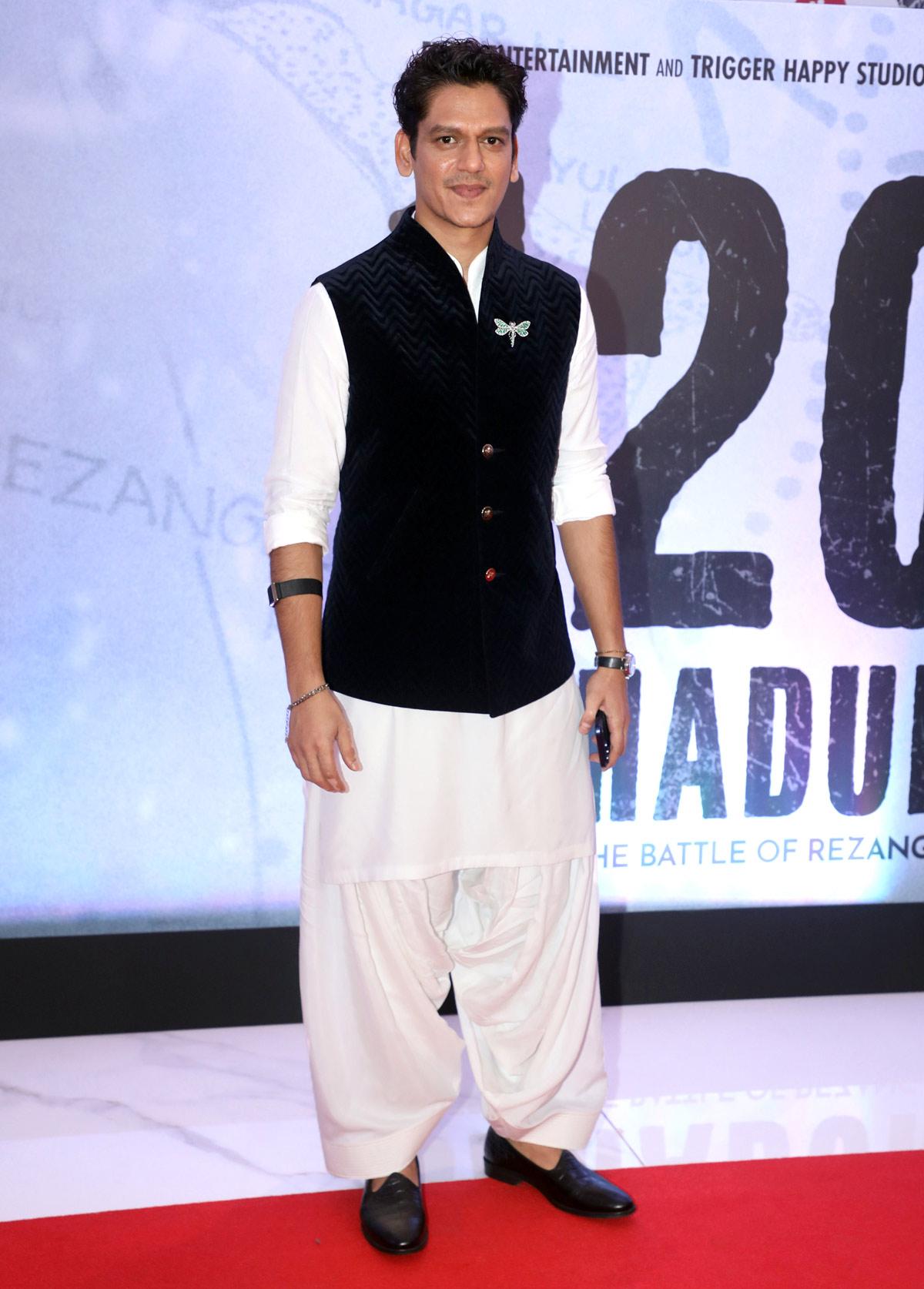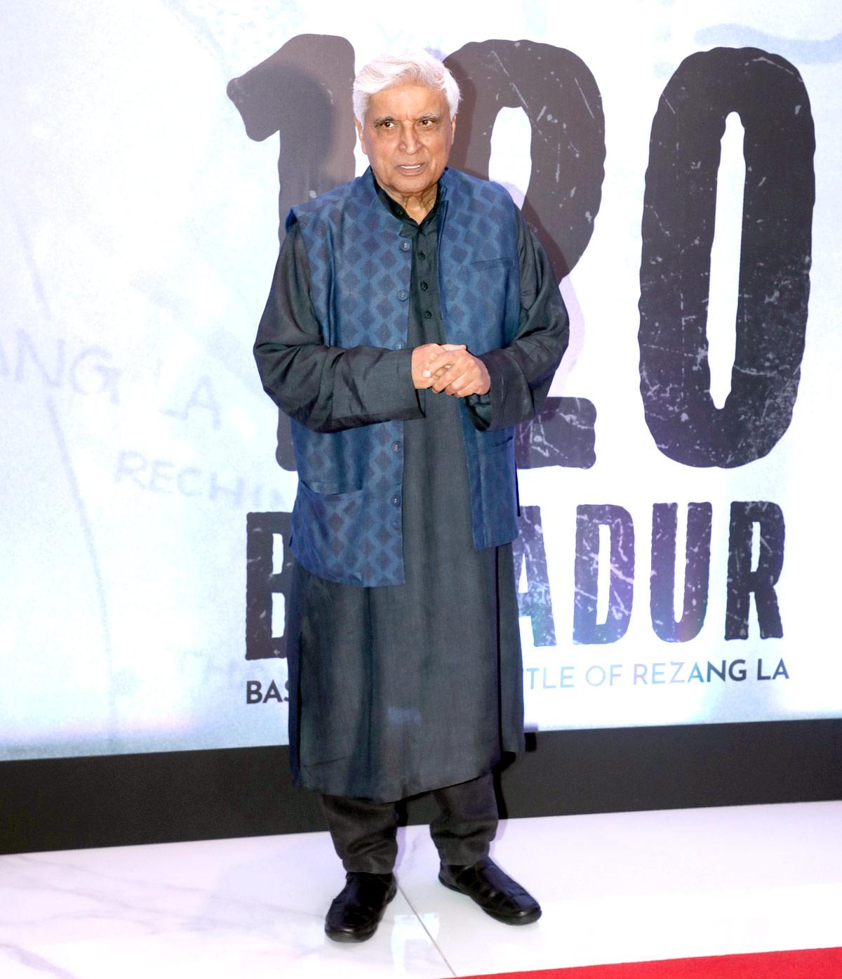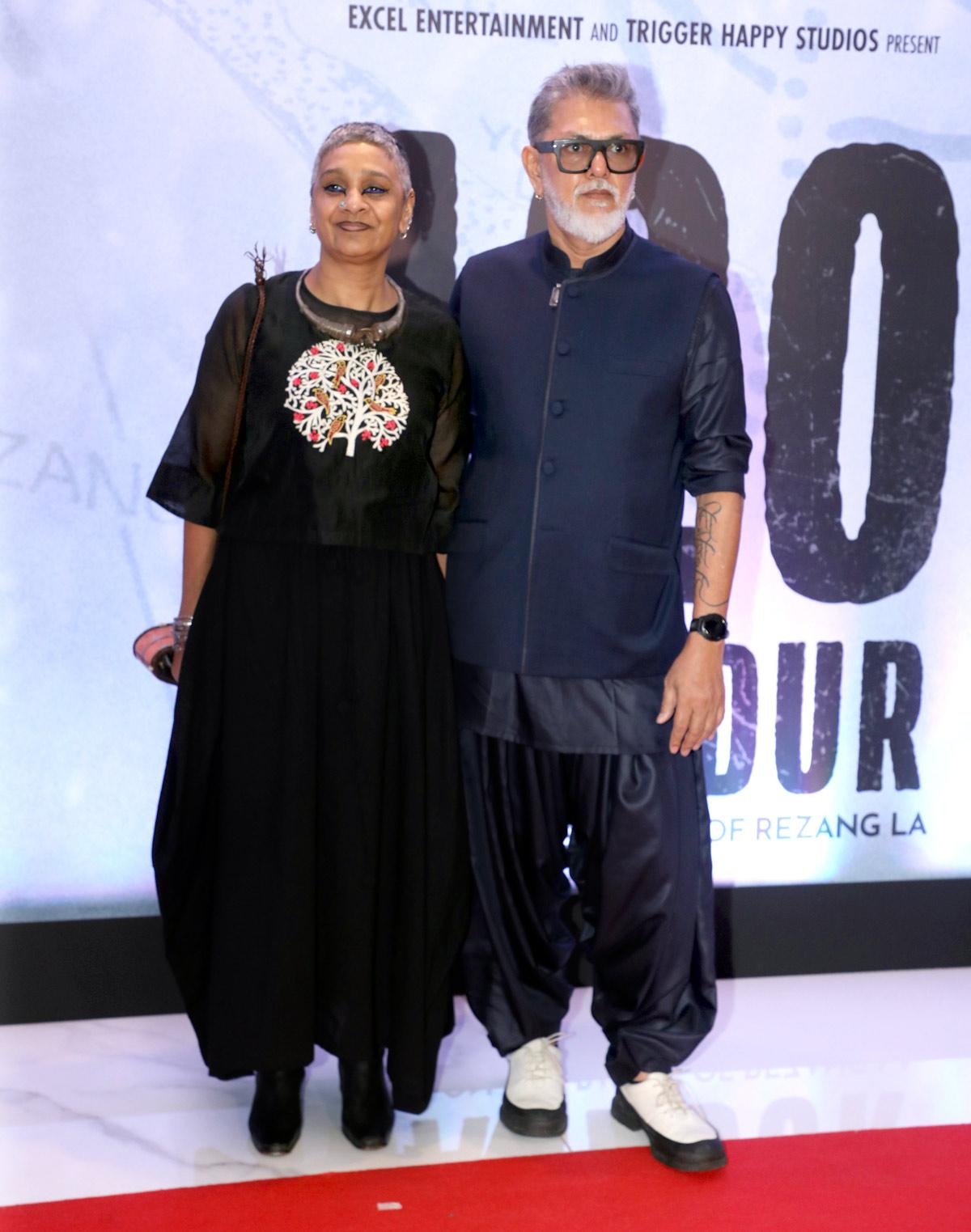 Farhan Akhtar ziet er trots uit 120 Bahadurzijn tweede oorlogsepos daarna Lakshya – hij regisseert de film niet, hij schittert erin – en nodigde mensen uit voor zijn speciale vertoning in Mumbai.