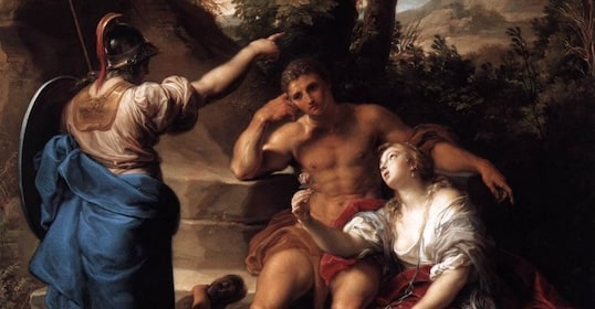 Toen Hercules zich in dat deel van zijn jeugd bevond waarin het voor hem normaal was om na te denken over welke levensloop hij zou moeten volgen, trok hij zich op een dag terug in een woestijn, waar de stilte en eenzaamheid van de plaats zijn meditaties enorm bevorderden.
