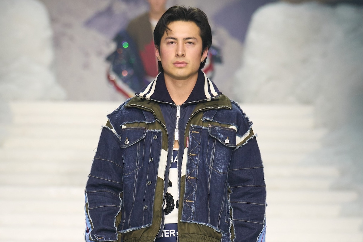Er is veel discussie geweest over welk modemerk als eerste een van de sterren van Heated Rivalry zou kunnen pakken, het in Canada geproduceerde gay bromance-drama – met af en toe een hockeywedstrijd – dat de afgelopen zes weken een behoorlijk cultureel fenomeen is geworden. Een Gen-Z-gecodeerde, homo-erotisch beladen kijk op wintersport klinkt helemaal in de straat van Dean en Dan Caten. En ze zijn bovendien Canadees. Het was dus passend dat ze alle anderen achter zich lieten en dat Hudson Williams – oftewel Shane Hollander, eigenaar van dat veelgenoemde huisje dat nu al op ieders zenuwen begint te werken – hun herfst/wintercollectie 2026 opende. Dkwadraat2 show.