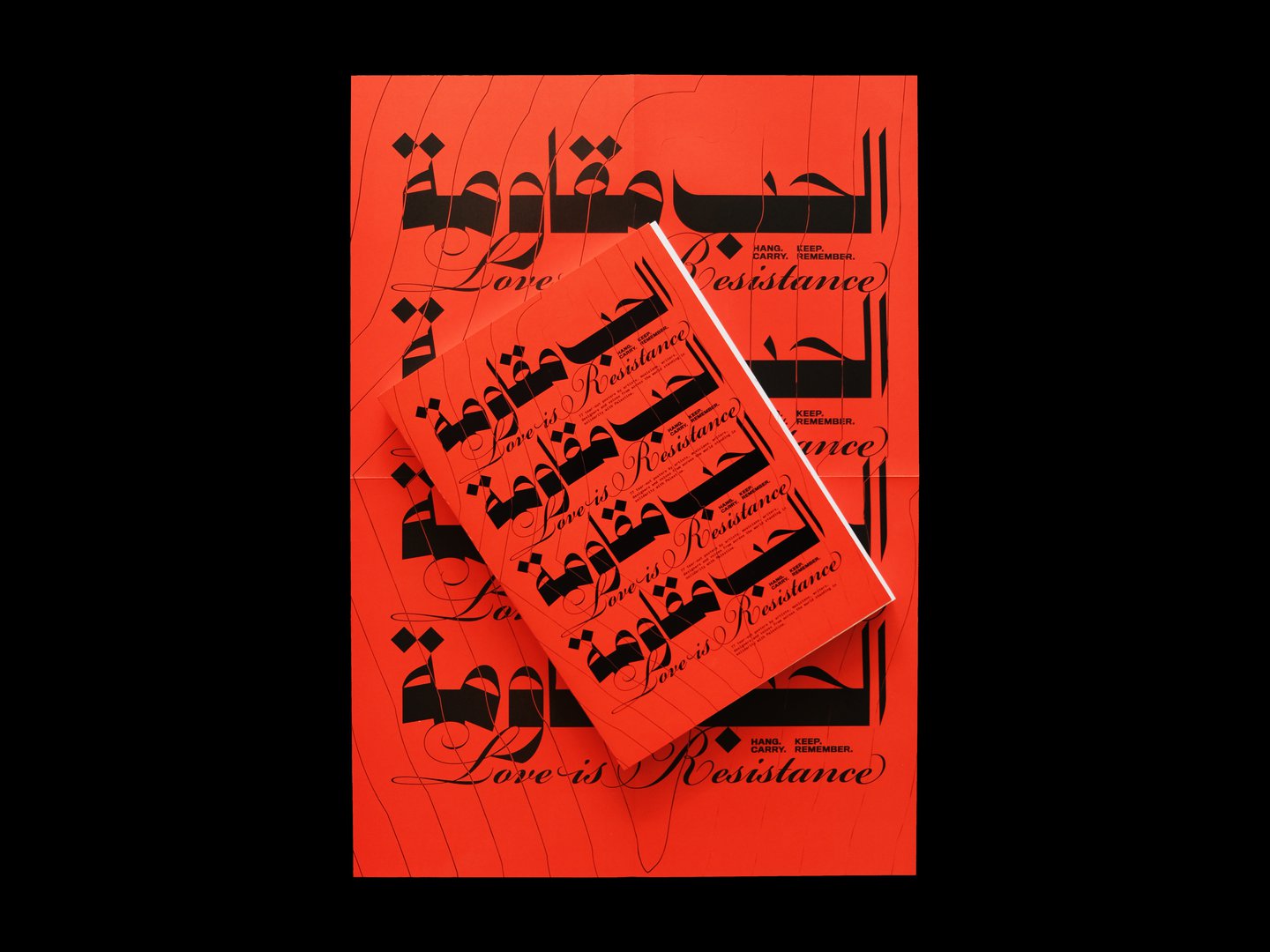 Als een boek dat gescheurd moet worden, Liefde is weerstand het is “ontworpen om bij elkaar te worden gehouden als een archief en om de manifesten ervan te laten circuleren, over muren, straten en schermen te bewegen, en zijn aanwezigheid uit te breiden tot buiten de pagina’s”, vertelt Aya. “Die relatie tussen archiveren en actie, vasthouden en vrijgeven, heeft het project vanaf het begin gevormd.” Het boek als object is ontworpen om een soort “dubbelleven te leiden: als object om vast te houden en als hulpmiddel voor beweging”.