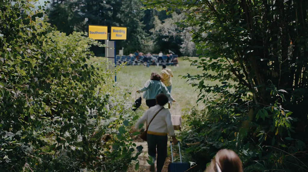 Bij Southwest Airlines’ nieuwe Super Bowl-commercialaan boord gaan lijkt meer op de Hongerspelen dan op een ordelijk proces. Gevestigd op een luchthaven die opnieuw is ingericht als een dichte jungle, haasten passagiers zich om hun favoriete stoelen te bemachtigen voordat het te laat is: een vrouw zwaait aan een gigantische liaan om haar medepassagiers te doorkruisen; een grootmoeder duwt een voorbijganger met haar schouder; en een man maakt een nep-stoelgenoot uit twijgen om andere vliegers ervan te overtuigen dat zijn stoel aan het gangpad al is blijven haken.