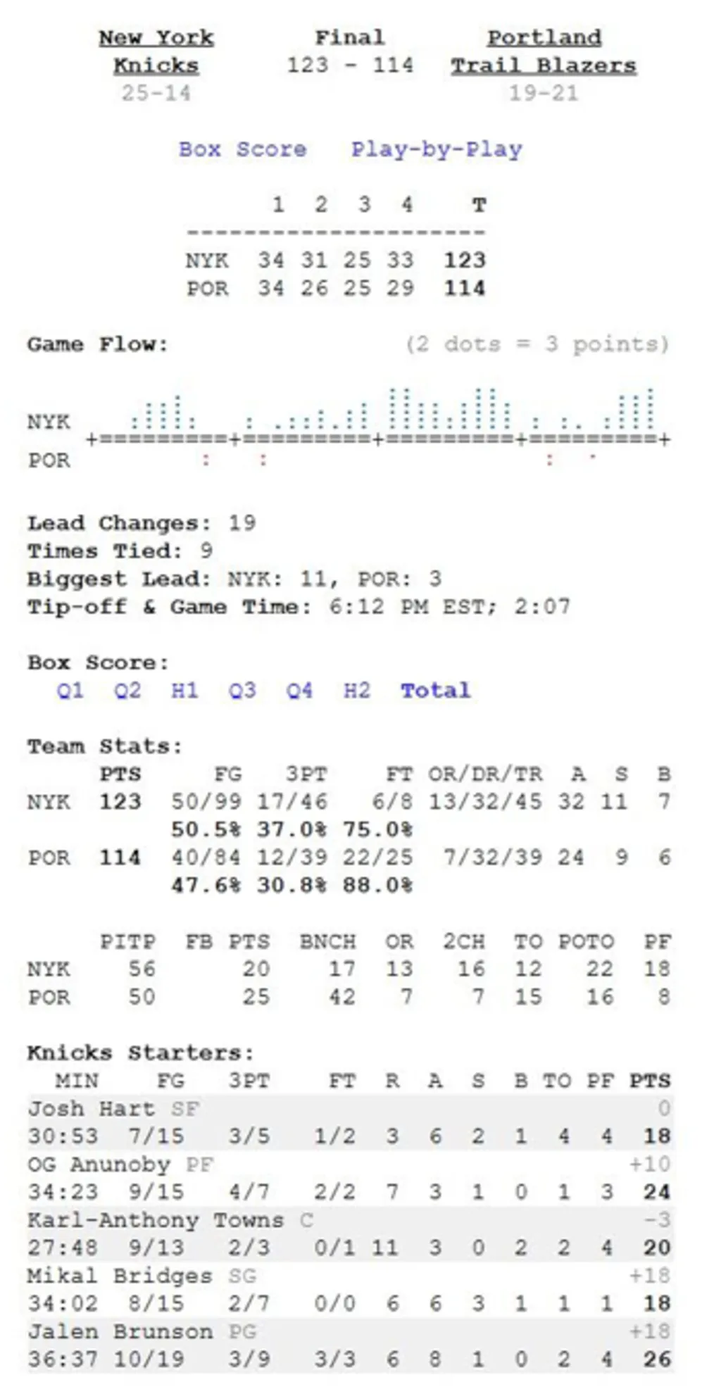 Na het gebruik van een app als ESPN of TheScore kan het sobere uiterlijk van Plain Text Sports even wennen zijn, maar je zult snel beseffen hoeveel informatie er op de startpagina staat. Voor elke competitie kun je doorklikken naar het speelschema, de standen en de teampagina’s. Als u op een spel klikt, worden gedetailleerde statistieken en spel-voor-spel-details weergegeven.