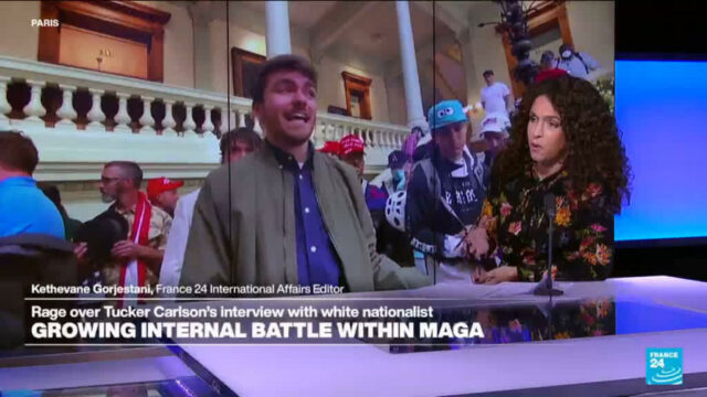 De Heritage Foundation, een invloedrijke conservatieve denktank, is in rep en roer nadat de leider de voormalige Fox News-presentator Tucker Carlson verdedigde, die de blanke nationalist en Holocaust-ontkenner Nick Fuentes interviewde in zijn populaire online show. France24 Redacteur Internationale Zaken Kethevane Gorjestani sluit zich aan voor meer.