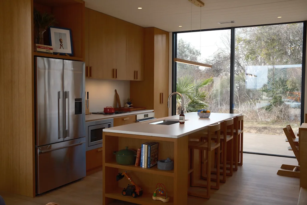 Om een van de valkuilen te vermijden waarmee andere bouwers te maken krijgen, heeft American Housing Corp. alle componenten zo ontworpen dat ze in standaard zeecontainers passen, zodat ze kosteneffectief kunnen worden verplaatst. Containers kunnen kosteneffectief per spoor, in plaats van per vrachtwagen, van de fabriek naar de stad reizen. “Ik denk dat een van de dingen die de productie van prefabs tot nu toe heeft tegengehouden, vooral volumetrische modulaire prefabs, is dat het verzenden van die modules ongelooflijk duur is”, zegt Meik. “Dit zijn grote ladingen en het kost tienduizenden dollars per module om ze te verzenden. Alles bij elkaar kunnen we minder dan $ 5.000 kosten om een eenheid van Texas naar Californië te verzenden.”