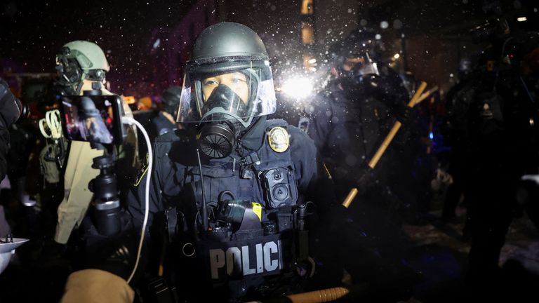 Mevrouw Noem zei dat hij de agenten met een pistool benaderde en gewelddadig tegen hen optrad, maar verschillende door Sky News geanalyseerde video’s weerleggen dit verhaal: