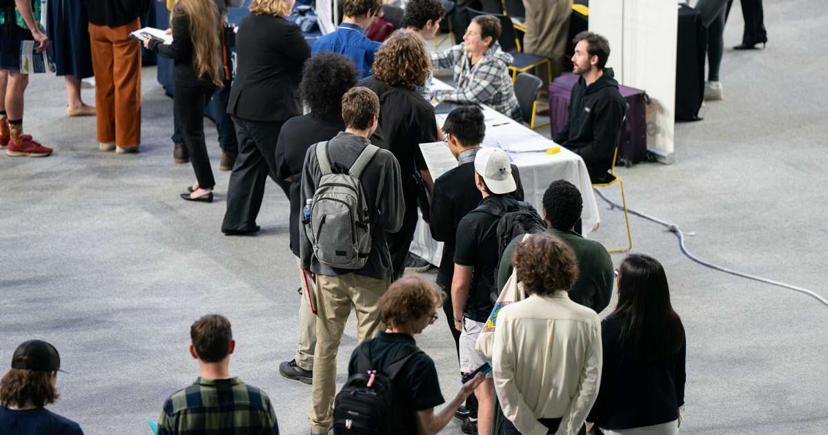 Mensen bezoeken in oktober een banenbeurs in Boone, North Carolina. (Allison Joyce/Bloomberg)